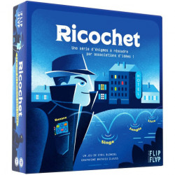 Suivez les aventures d’agents secrets loufoques dans une succession d’énigmes originales à résoudre seul ou à plusieurs. En utilisant les associations d’idées, faites des ricochets de mot en mot pour trouver le bon chemin et résoudre le rébus final !30 énigmes successives vous présentent l’aventure loufoque d’une équipe d’agents secrets. Chaque énigme est constituée d’un dialogue dont il faut découvrir la dernière phrase pour comprendre l’histoire, Pour la trouver, le ou les joueurs (en collaborant) doivent résoudre une grille de 25 mots dont la plupart doivent être cachés par des «galets». Pour les placer, les joueurs doivent trouver des couples de mots obligatoirement alignés. Chaque couple de mots amène par ricochet (association d’idées) au couple de mots suivant, jusqu’à ce que tous les galets soient posés. A la fin, les mots encore visibles (de 3 à 6) présentent un rébus drôle qui, une fois lu à haute voix dans le bon ordre, permet aux joueurs de découvrir une phrase ! La dernière du dialogue...Le contexte et des indices permettent aux joueurs de trouver le bon ordre. En cas d’erreur de parcours, ils doivent retourner en arrière ou recommencer, en regardant si besoin les réponses fournies.Ricochet, les points forts :- Original et addictif- Seul ou collaboratif- Plus de 30 énigmes pour des heures de jeu