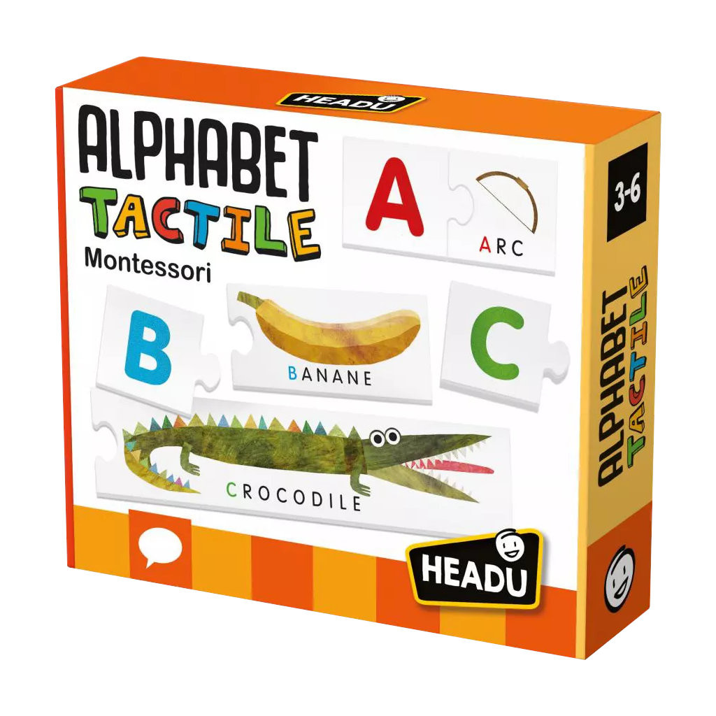 Grâce à Alphabet Tactile Montessori, l'enfant touche les lettres imprimées en relief, associe les mots aux graphèmes. De 3 à 6 ans.