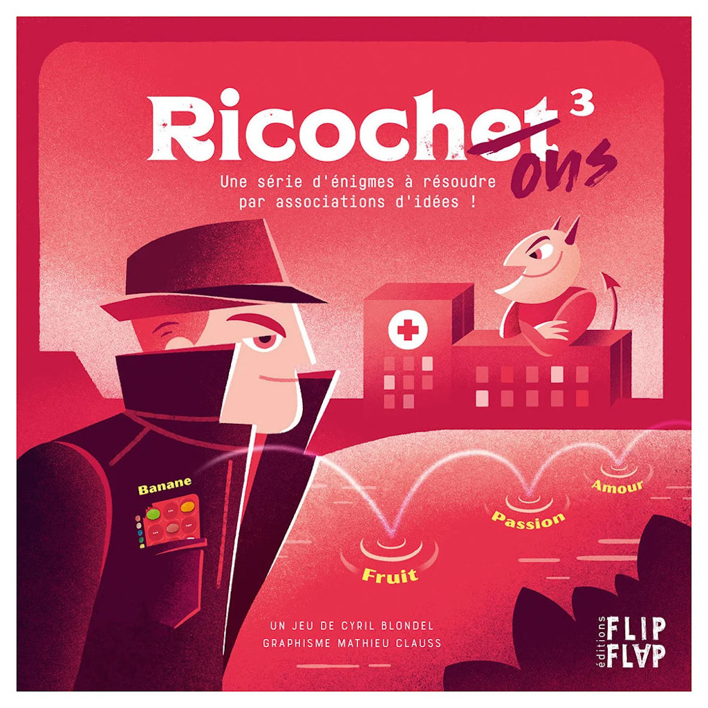 Le contexte de l'histoire reliant les énigmes entre elles et des indices en fin de parcours permettent de cerner chaque situation bien souvent humoristique !Jeu destiné à un public adulte.Ricochet, les points forts :- Un jeu original et (très) addictif- Seul ou collaboratif- Plus de 30 énigmes pour des heures de jeu
