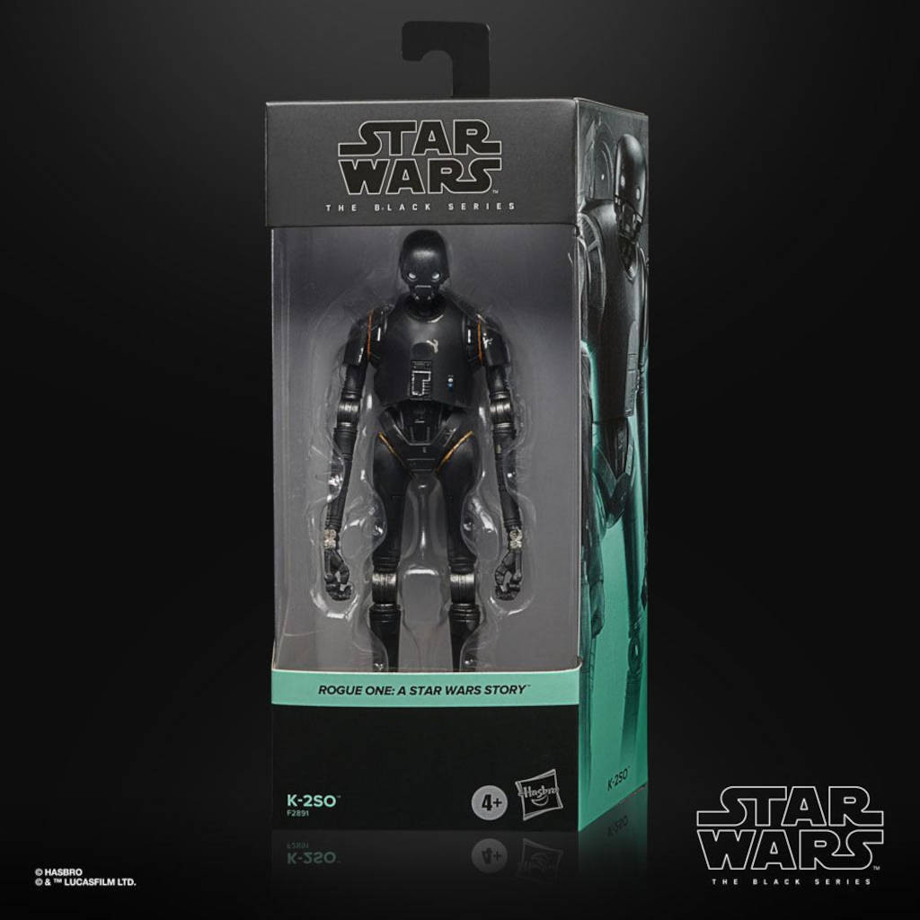 Figurine articulée de la collection Star Wars : Black Series représentant le droïde de sécurité reprogrammé et ami de Cassian Andor, K-2SO.