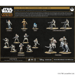Star Wars : Légion - Echo Base Defenders Army BoxL’édition spéciale de cette Boîte d’Armée contient suffisamment de figurines et d’unités pour construire une armée d’escarmouche de 600 points qui utilise les règles de la Force Armée Défenseurs la Base Echo (Battleforce), ainsi que toutes les cartes dont vous aurez besoin. Le ticket d’entrée idéal pour démarrer son armée de l’Alliance Rebelle et revivre l'affrontement mythique sur Hoth.