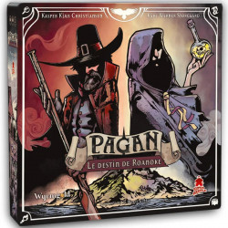 Pagan : Le Destin de Roanoke. Un jeu de déduction pour une sorcière et un chasseur de sorcières et qui se déroule dans l’Amérique coloniale du XVIe siècle.