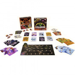 Stellarion est un jeu unique de deck management (gestion de paquets) où toutes les cartes du jeu sont réparties en 8 paquets dont vous connaissez la composition. Pour l’emporter vous devez faire en sorte d’obtenir au sommet de certains paquets les cartes adéquates -et vous y parviendrez en défaussant habilement les cartes… au sommet de ces paquets !