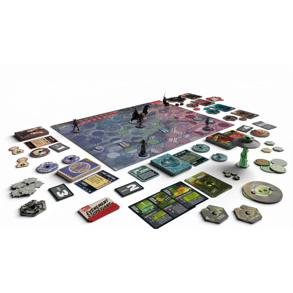 - 2 figurines Super-Vilain- 8 jetons Fatalité/Alien- 19 cartes Action Super-Vilain- 2 doubles-compteurs Santé Super Vilain- 6 compteurs Santé Sbire- 45 cartes Action Sbire- 6 jetons Sbire- 1 marqueur Menace- 6 jetons Toile- 6 jetons Acide- 4 jetons Pont- 4 jetons Invasion- 4 marqueurs Ordre du Tour- 22 cartes Initiative- 12 cartes Évènement Stupéfiant- 1 plateau Recto Verso- 1 Règle du jeu