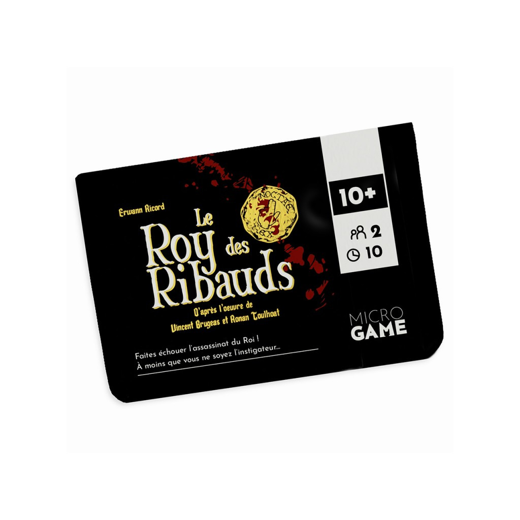 Le Roy des Ribauds est un jeu de bluff et de contre bluff imaginé par Erwann Ricord, jeune talent ludique qui a déjà rejoint la gamme des MicroGames avec Western Legends Showdown.Avec seulement 16 cartes répartie en 4 type de cartes, dont une grande partie est visible, et 3 conditions de victoire, il permet pourtant de tromper et surprendre l’adversaire.Les cartes illustrées par Ronan Toulhoat et tirées de la BD éponyme du scénariste Vincent Brugeas, aux éditions Akileos, sont brillamment mises en valeur par Anthony Questel.