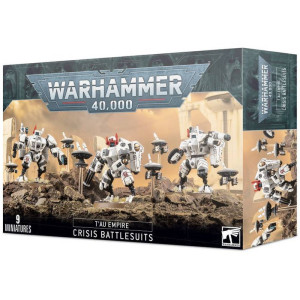 Ce kit plastique contient tout le nécessaire pour assembler trois XV8 Crisis Battlesuits, accompagnées de six drones. Le tout offre d'impressionnantes possibilités de personnalisation, avec des articulations sphériques pour maximiser le choix des poses. Une des figurines peut être montées en tant que Shas'vre, avec une tête et un pectoral spéciaux, et la boîte fournit un arsenal avancé T'au prodigieux: quatre fusils à plasma, trois lance-flammes, quatre éclateurs à fusion, quatre canons à induction, trois nacelles de missiles et trois générateurs de boucliers. Les six drones d'escorte peuvent être montés sous forme de variante Gun, Shield ou Marker, jusqu'à trois pouvant être du même type. Le kit contient en outre un assortiment de systèmes électroniques pour exo-armure. Une des figurines du kit peut même être assemblées sous forme de XV8-02 Crisis Battlesuit expérimentale de classe Iridium, reconnaissable à son blindage plus épais et à son allure agressive. Une variété considérable!