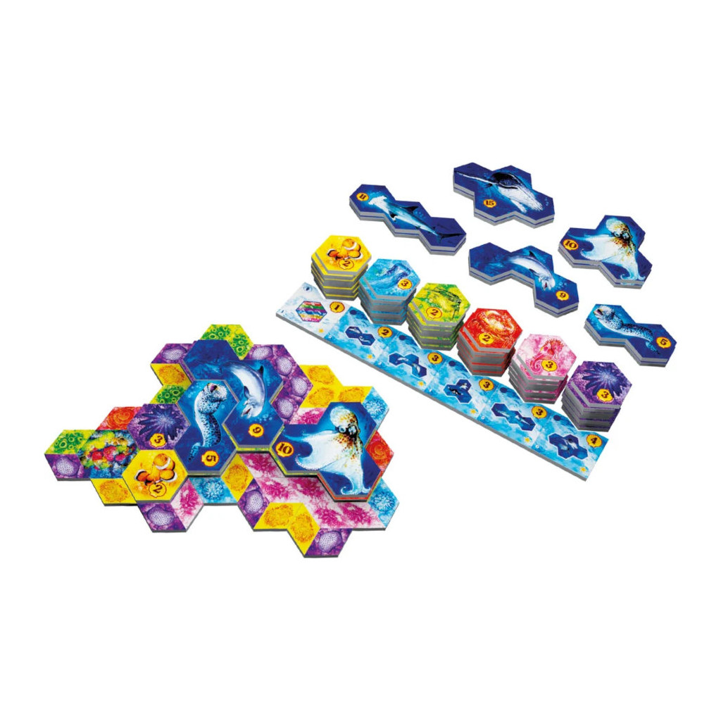 Au départ, chaque joueur contrôle un point chaud de biodiversité. À chacun des 17 tours que compte la partie, chaque joueur choisit l’une des tuiles coraux visibles et l’ajoute à son écosystème. Ce faisant, si vous assemblez trois morceaux de coraux identiques, formant un habitat, vous y placez un petit animal (tortue verte, poisson clown, crabe-trapèze, etc). Si de multiples coraux de même couleurs sont assemblés, ils forment un récif. Enfin, si vous possédez suffisamment de petits animaux, vous pouvez les recouvrir par un grand animal (murène, pieuvre, requin-marteau, etc.).