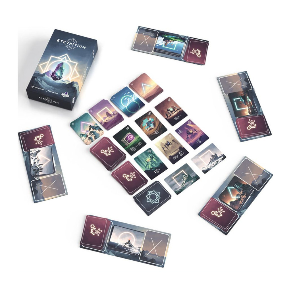 Plongez dans l'univers palpitant de Eternitium, un jeu de Deck Building captivant où vous traverserez les âges à la recherche de la légendaire gemme d'immortalité. À travers le continuum espace-temps, d'époque en époque, vous allez devoir faire preuve d'habilité et de réflexion pour manipuler les portails temporels afin d'être le 1er à trouver la fameuse gemme tant convoitée.