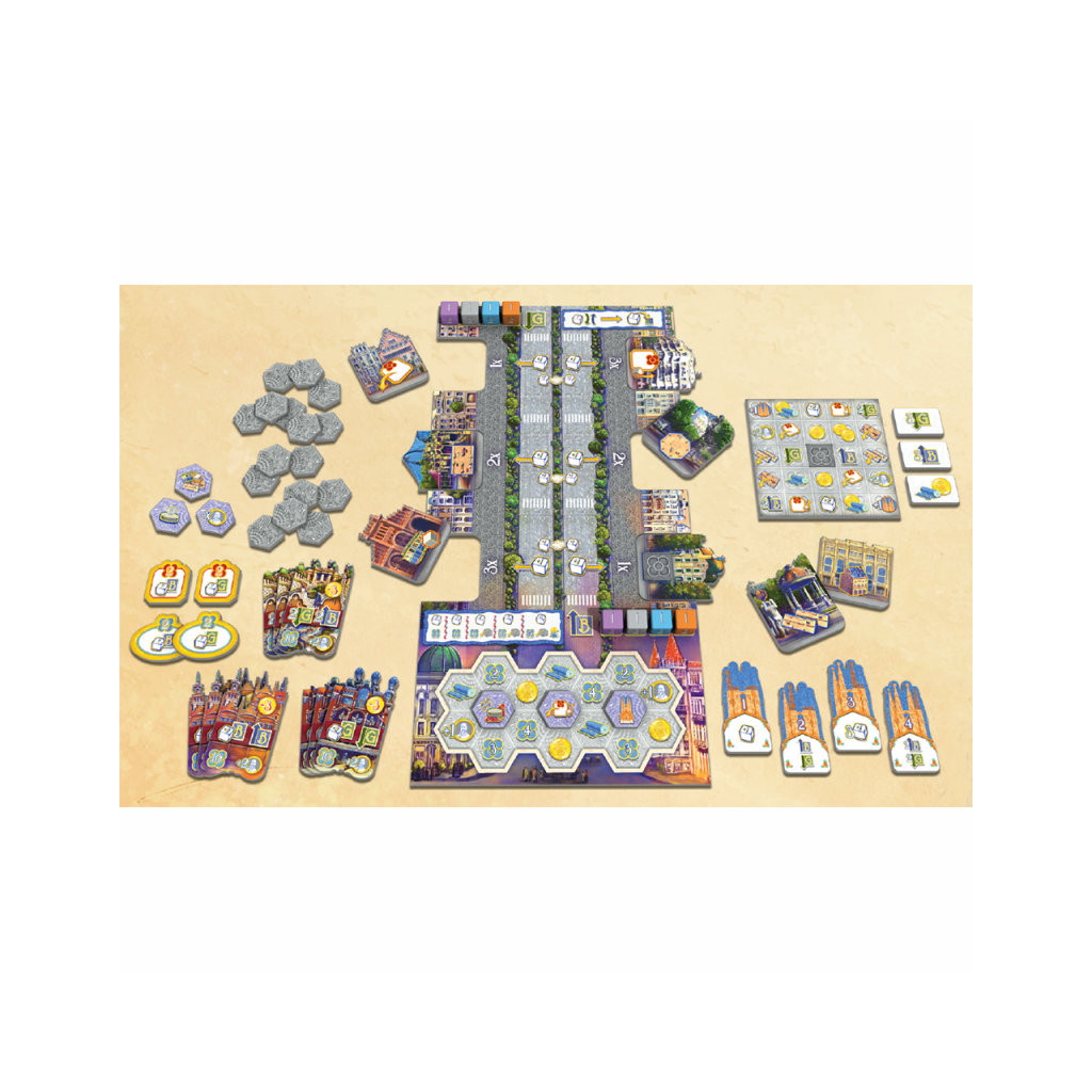 1 plateau additionnel8 tuiles Commodités20 tuiles Dallage hexagonal3 tuiles Action2 tuiles Modernisme9 tuiles Service Public4 tuiles Sagrada Familia1 tuile Trottoir8 dés Piéton