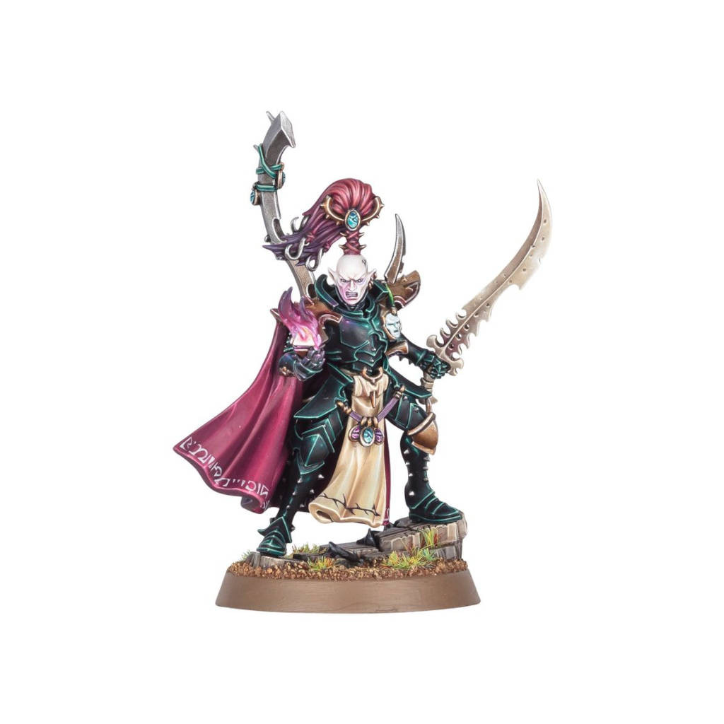 Les Archontes dirigent leurs kabales avec un mélange de malice, d’arrogance et d’habileté martiale à couper le souffle. À ces qualités, il convient d'ajouter un arsenal ésotérique qui leur permet de combattre tout en étant dissimulés sous un voile d'ombre, d’arracher à leurs corps les âmes de leurs victimes et de réduire leurs adversaires en coquilles desséchées d'un seul coup d’épée.Ce kit en plastique permet d'assembler un Archonte, un meneur cruel et sadique pour vos armées de Drukhari dans les parties de Warhammer 40,000. Sa spécialité est l'orchestration des raids sur l'espace réel et la capture de prisonniers pour les rapporter au sein de la sombre cité de Commoragh. L'Archonte peut être équipé au choix d'un piège à âmes, d'un pistolet éclateur ou d'un pistolet disloqueur, et d'un neurocide, d'une lame dessicante ou d'une épée énergétique de maître. Le kit propose deux options de torse, trois têtes, deux ceintures, et un socle scénique évocateur. Quelle que soit la façon dont vous l'assemblerez, sa pose dynamique et ses nombreux détails sinistres en feront une pièce de choix pour mener vos armées à la victoire ou laisser s'exprimer vos talents de peintre.Ce kit est composé de 23 éléments en plastique et de 1x Socle Rond Citadel de 32mm.