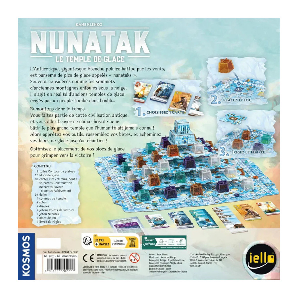 Vin d'jeu: Nunatak demande plusieurs parties afin de bien le maîtriser. Ses points à profusion perdent les joueurs lors des premières parties et il est difficile de prédire l’issue du jeu. Il faut être bien vigilant lors du placement des blocs car il est aisé d’oublier des petits points par-ci par-là. Il a des règles ultra simples et pourtant il demande de bien réfléchir à son action afin de choisir la solution qui apportera le plus de points. L’édition est très bien réussie ce qui contribue à rendre les parties agréables. Une fois achevé, le temple a quand même fière allure ! On bâtit ensemble mais finalement il n’y aura qu’un seul vainqueur. Tous nos avis sur: https://www.vindjeu.eu/