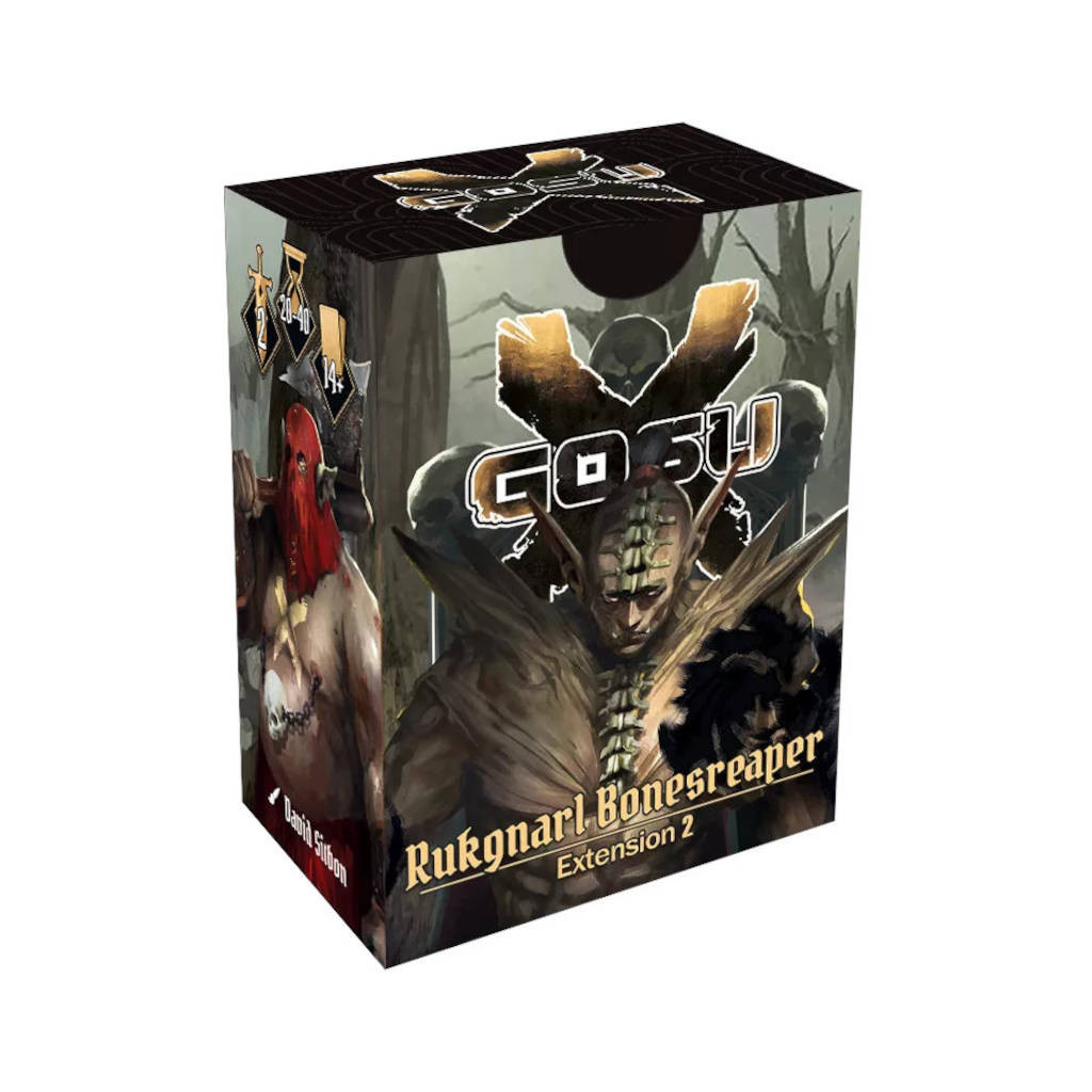 Shadowstep, Umbra et SoloLes joueurs et joueuses découvriront avec Rukgnarl Bonesreaper de nouveaux concepts. La capacité de Shadowstep permet de remplacer des cartes capturées ou de retourner la situation à son avantage en « tentant un Shadowstep ». Une carte Solo voit sa valeur d’armée doublée si elle est libre, et Umbra permet d’activer la carte en échange d’un jeton Corruption.Cette seconde extension pour Gosu X nécessite le jeu de base et l’extension Abunakkashii pour être jouée. La phase de draft est modifiée et intègre désormais une phase de ban préliminaire, au cours de laquelle chaque joueur va retirer du jeu l’un des 10 clans, ne laissant plus que 8 clans disponibles pour le draft.