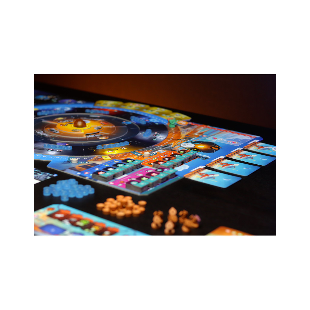 Vous utiliserez également plus de 200 cartes pour faciliter vos efforts ou orienter vos recherches dans une direction particulière afin d’obtenir des bonus et des récompenses supplémentaires. Chaque carte a des effets et des illustrations uniques et représente des technologies, des projets et des découvertes de la vie réelle (comme l’ISS, le Grand collisionneur de hadrons, le rover Persévérance, la sonde Voyager et bien d’autres).