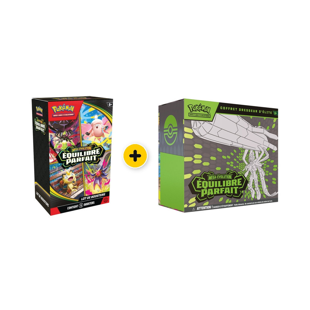Bundle Pokémon comprenant le Coffret Dresseur d'Elite ME03 ainsi que le Lot de 6 Boosters de la série ME03 Équilibre Parfait.