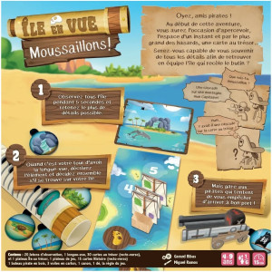 Dans les îles des Caraïbes, on entend beaucoup d'histoires de pirates et de trésors cachés…Lors de votre aventure, observez tous pendant quelques secondes une carte aux trésors et retenez les précieux éléments qu'elle recèle. Passez-vous ensuite tour à tour la longue-vue pour décrire ce que vous y voyez, mais attention aux attaques des pirates !Parmi toutes ces îles une seule cache le butin. Retrouvez la tous ensemble dans ce jeu de mémoire et de communication.