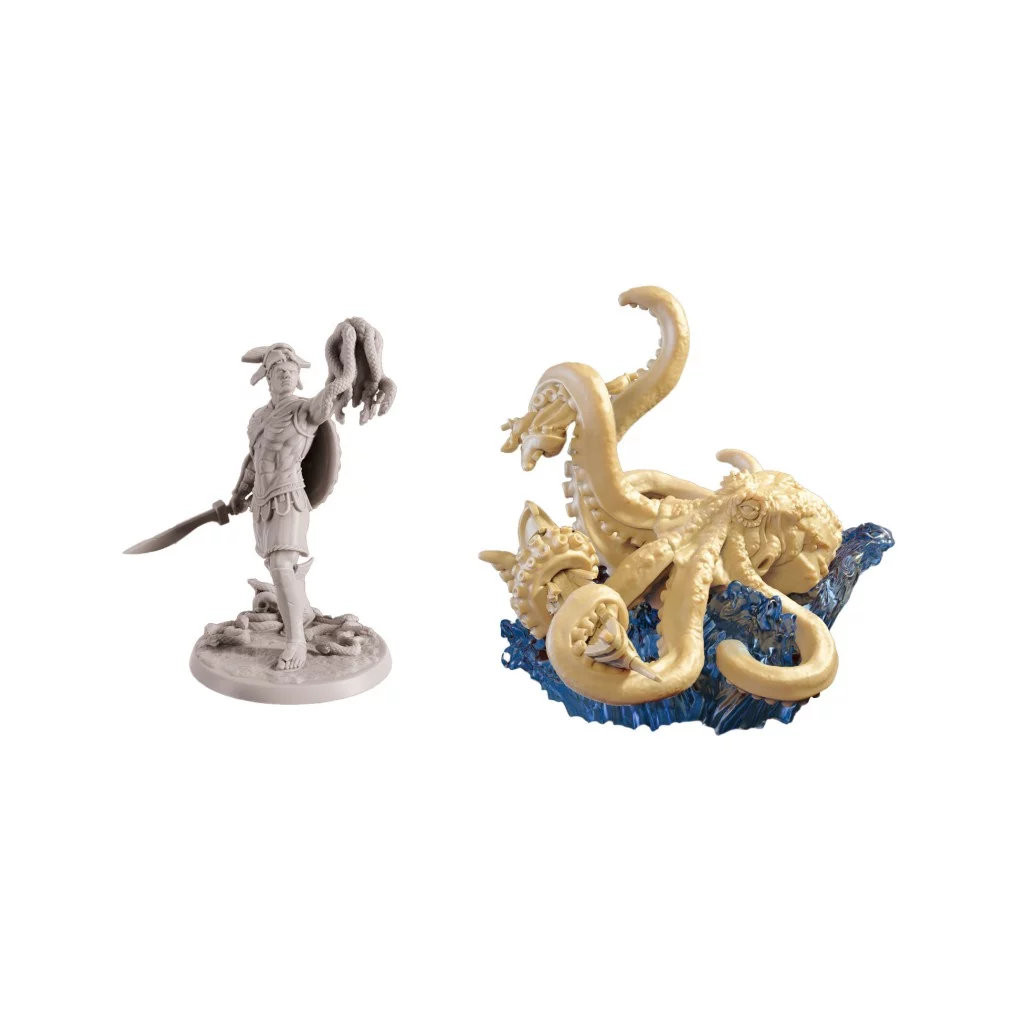 Cette extension introduit 15 figurines finement sculptées pour enrichir vos parties de Cyclades: Legendary Edition. Les 9 Héros, dotés de poses dynamiques, capturent toute leur personnalité, tandis que les 6 Créatures, de taille colossale, se démarquent par leurs socles scéniques imposants, renforçant vos affrontements épiques.