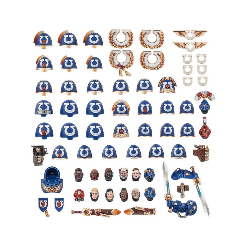 Par bien des aspects, les Ultramarines incarnent la quintessence des Chapitres Space Marines. Du fait de leur longue et fière histoire, ils arborent moult marques honorifiques, comme des médailles, des symboles de l'Ultima, des couronnes de lauriers et des écus ornementés. Les Ultramarines sont fiers de respecter à la lettre le Codex Astartes, écrit par leur Primarque, qui détaille tous les marquages d'unité, numéros d'escouade et insignes d'honneur que les Space Marines doivent utiliser sur leurs armures et leurs véhicules.Ce kit en plastique permet de décorer vos figurines de Space Marines, fantassins, Terminators, véhicules et Dreadnoughts, en leur donnant un cachet typiquement Ultramarine ainsi qu'un surplus de personnalité. Vous y trouverez des accessoires, des détails décoratifs, des têtes pleines de caractère et des épaulières sculptées pour divers types d'armures.Ce kit d'améliorations contient :Têtes– 8x têtes nues (pouvant être utilisées pour les armures Tacticus et Phobos)– 4x casques TacticusÉpaulières– 6x épaulières Phobos– 9x épaulières Tacticus– 3x épaulières de Vétéran Bladeguard– 5x épaulières Gravis– 3x épaulières d'Escouade Aggressor– 6x épaulière d'armure TerminatorComposants alternatifs d'armure Terminator– 1x casque– 1x tête nue– 1x torse d'armure Terminator– 1x tête de bolter Storm avec chargeur– 1x écu– 1x bras avec épée énergétiqueArmes et accessoires– 1x bras avec lame de combat– 1x lame de combat dans son fourreau– 1x fourreau vide– 1x holster de pistolet– 1x ensemble de sacochesIcônes de véhicule– 6x symboles de l'Ultima– 2x symboles de l'Ultima ailés– 4x grands symboles de l'UltimaPlanche de décalcos– 1x Planche de Décalcos des Ultramarines, proposant 255 décalcos de grande qualité. Elle comporte des icônes de Chapitre des Ultramarines, des symboles de rôle tactique, des badges de campagne, des chiffres et des marquages honorifiques, ainsi que de plus grandes décalcos pour décorer les véhicules.Ce kit est composé de 69 éléments en plastique conçus pour être assemblés avec d'autres kits en plastique des Space Marines, comme ceux des Intercessors, des Aggressors, des Terminators, des Infiltrators et plus encore, tous vendus séparément.