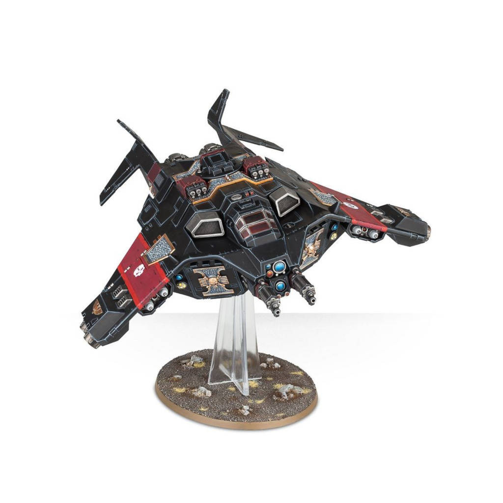 Considérablement plus avancé que les aéronefs impériaux d'apparence similaire, le Corvus Blackstar est digne de convoyer une Deathwatch Kill Team pour sa brutale mission. Optimisé pour la chasse à l'extraterrestre, étonnamment agile, il fait hurler à mort ses armes tout en descendant du ciel vers les cibles clés de la mission. Les halo-lanceurs brouillent les contours du Corvus Blackstar et ses écoutilles jumelles s'ouvrent pour déverser sa cargaison de spécialistes de la Deathwatch directement au contact.