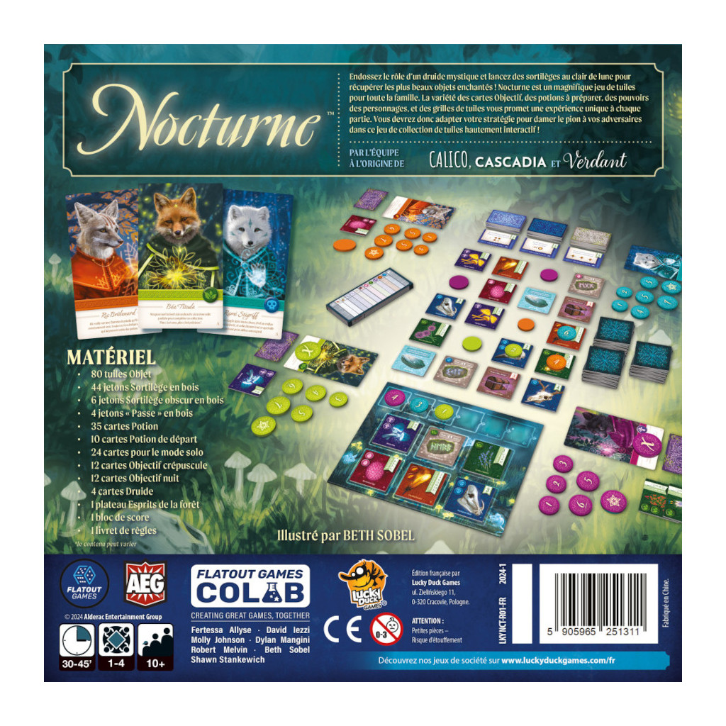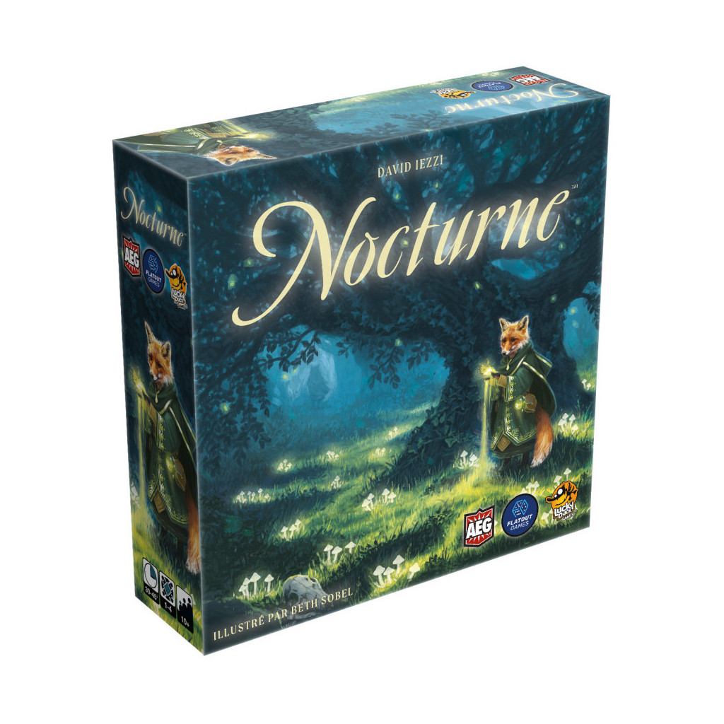 Nocturne est un jeu d’enchères spatiales et de collecte d’objets qui se déroule dans une forêt fantaisiste au clair de lune, joliment illustré par Beth Sobel !