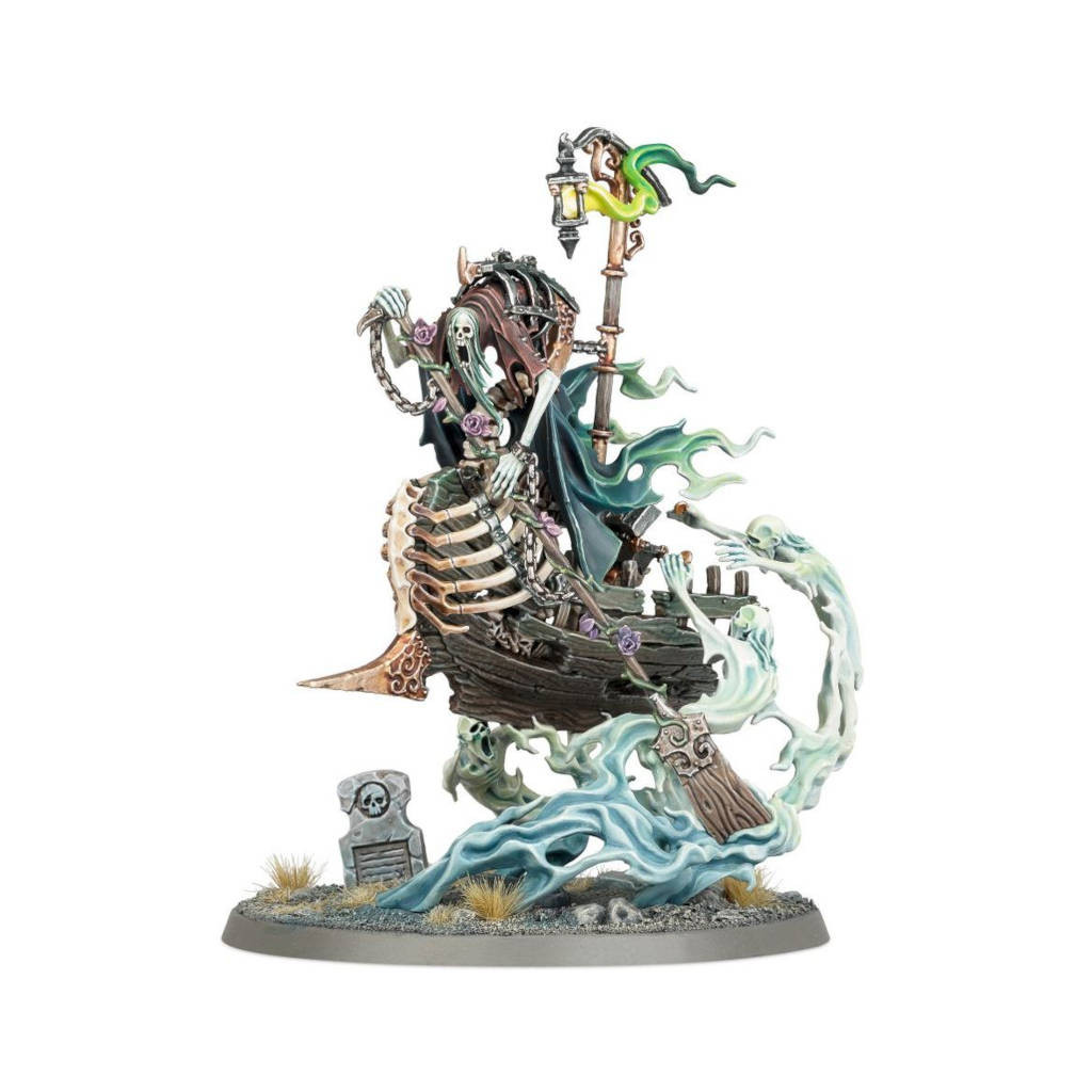 De son vivant, Awlrach promettait assistance et transport aux voyageurs aux abois, pour les vouer à une mort atroce dans les profondeurs du gouffre amer. Quand l’âme d’Awlrach parvint jusqu’à Nagash, celui-ci récompensa sa traîtrise par une éternité de servitude. Désormais, ce sinistre nocher drague les âmes à la dérive pour renforcer les osts Hantenuits, et les convoie à travers le plan éthéré jusqu’à l’endroit où elles causeront les plus de dégâts.
