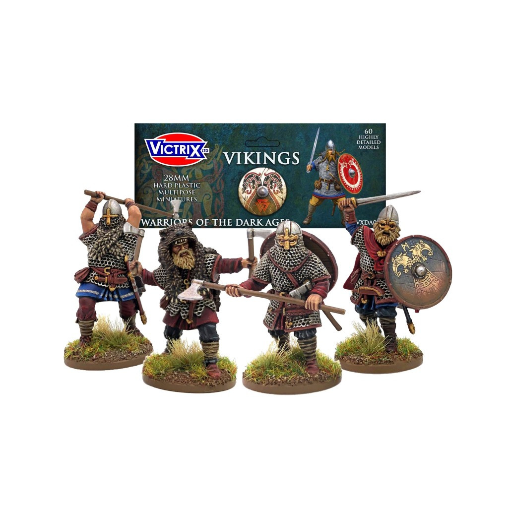 Ce kit plastique de la marque Victrix Miniatures vous permettra d'assembler 60 figurines d'infanterie Viking avec plusieurs options d'équipements.
