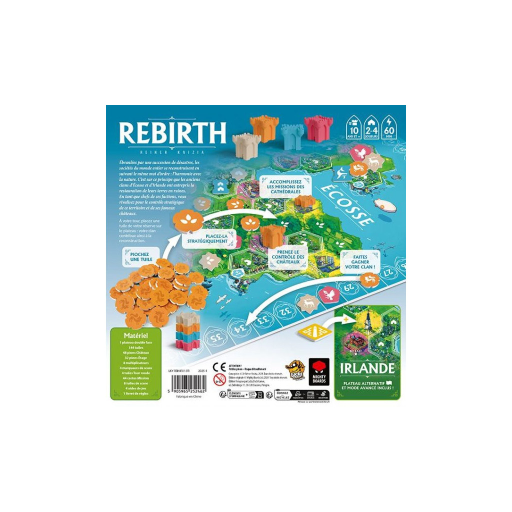 1 livret de règles1 plateau double face4 aides de jeu32 cathédrales56 châteaux4 plateaux Clan8 jetons Score4 marqueurs de score4 marqueur X2144 tuiles de jeux32 cartes Mission Ecosse12 cartes Mission Irelande14 jetons Bonus