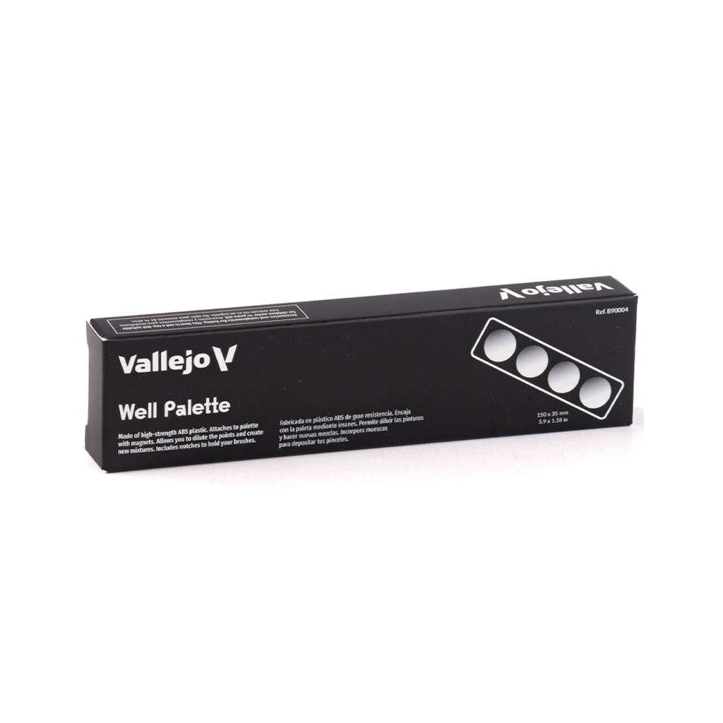 Fabriquée en plastique ABS, la palette à godets Vallejo comporte 5 godets pour mélanger ou diluer les couleurs.