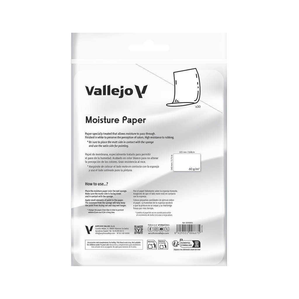 Le Papier Rétenteur d'Humidité Vallejo est conçu pour être suffisamment fin afin de permettre le transfert d’humidité. 30 Feuilles.