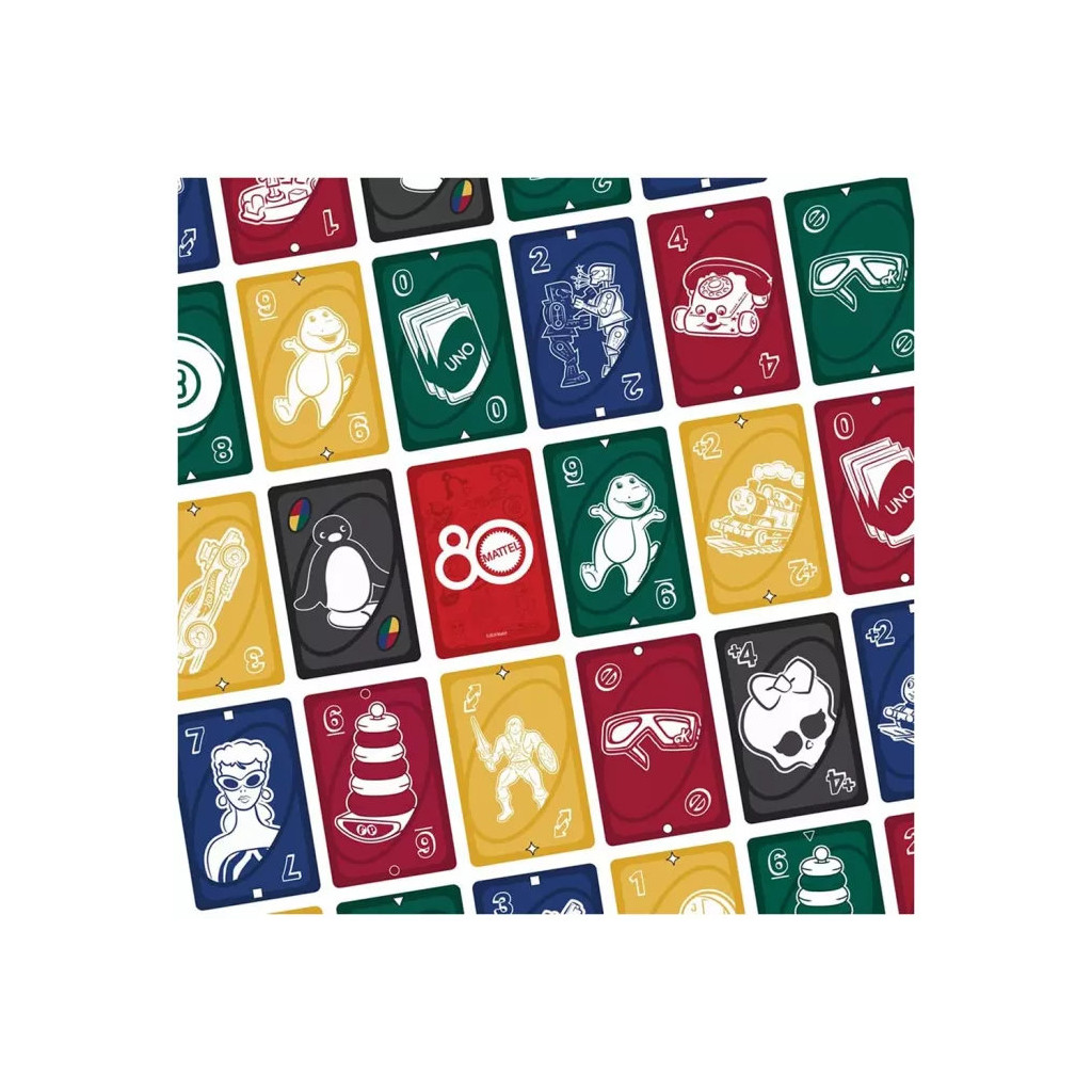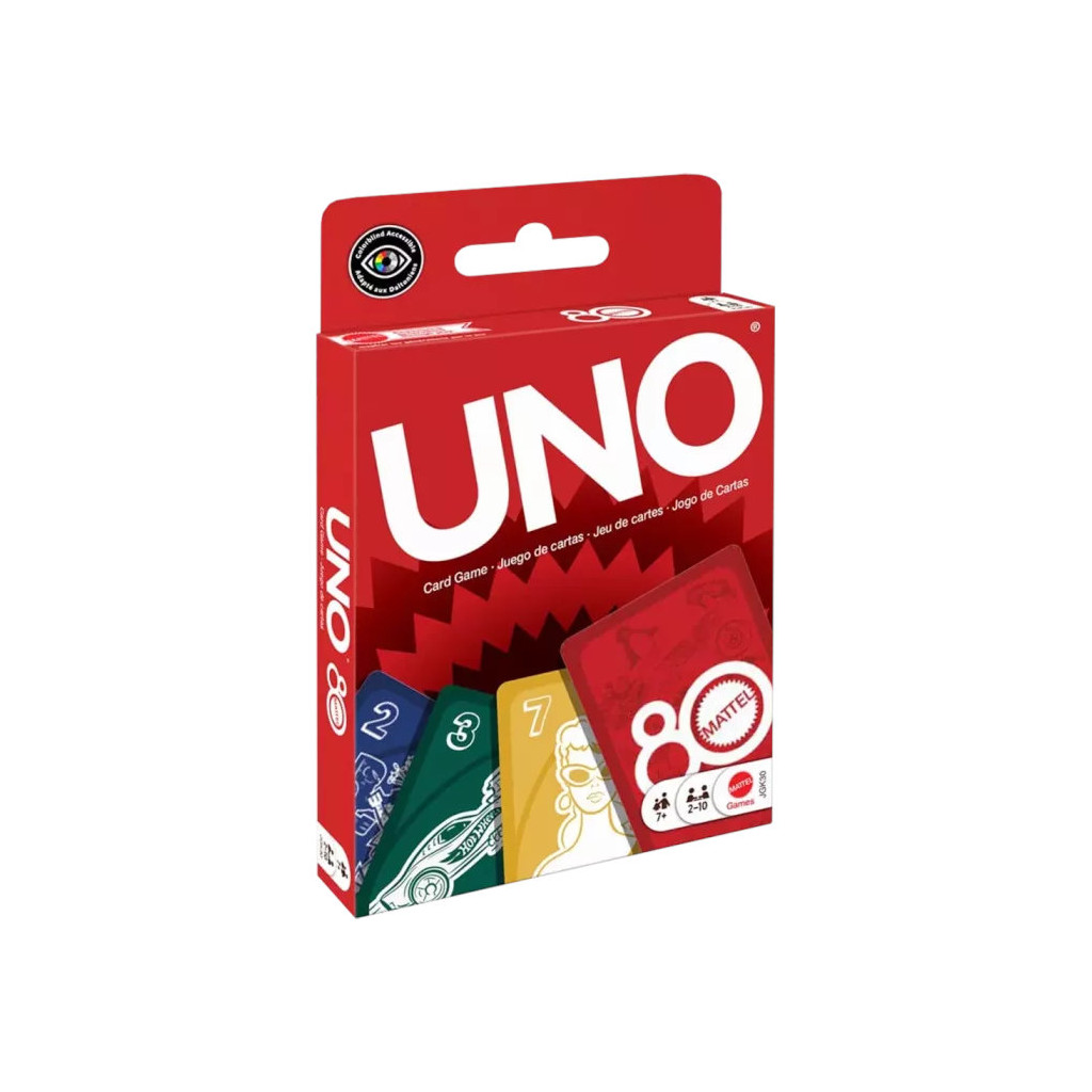 Les fans des jouets et des jeux créés par Mattel au fil des années vont adorer jouer à UNO Rouge Rubis – édition spéciale 80 ans Mattel. Les cartes de cette version collector sont illustrées sur le thème des produits emblématiques de la marque : Hot Wheels, Barbie, Rock'em Shock'em Robots et plus encore.