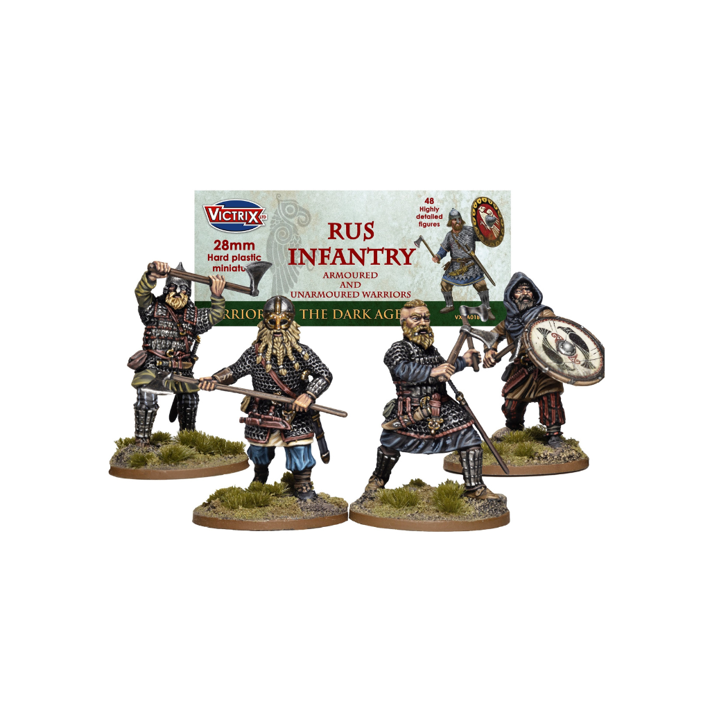 Ce kit plastique de la marque Victrix Miniatures vous permettra d'assembler 48 figurines d'infanterie Rus avec plusieurs options d'équipements.