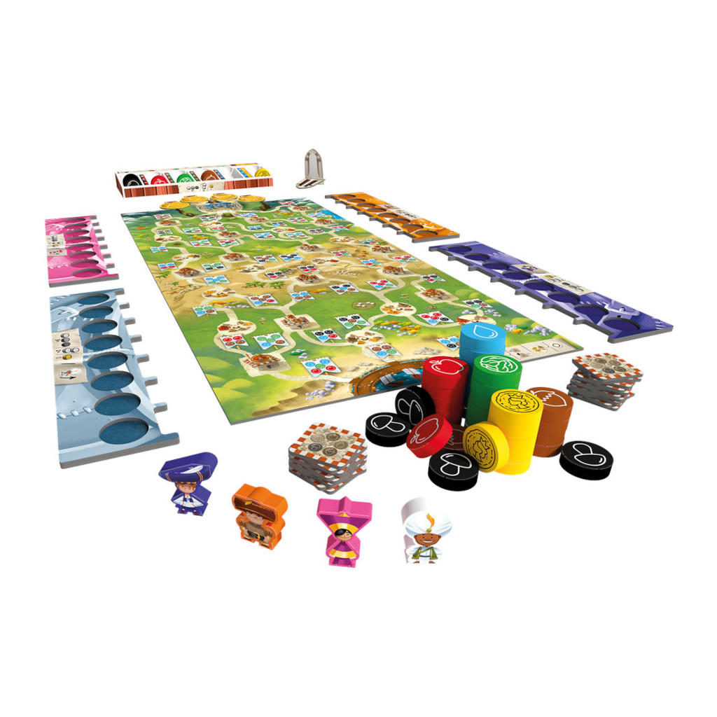 Dans cette adaptation familiale du célèbre jeu Splendor, chaque joueur collecte des ressources (eau, chou, pomme…) qu’il utilise ensuite pour progresser sur le plateau. Les villes permettent de gagner des ressources permanentes, tandis que les villages offrent l’opportunité de rejouer. Choisissez la meilleure stratégie pour atteindre les Portes du Palais avant leur fermeture : une parfaite initiation au jeu de société pour les enfants.