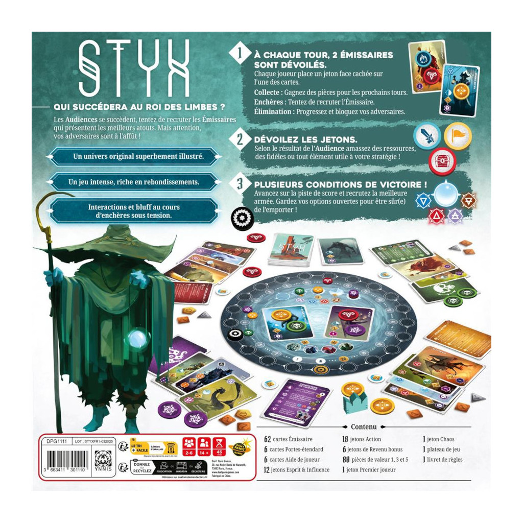 Les peuples des Limbes ne peuvent rester sans souverain. Des Abysses aux rives du Styx, les différentes tribus envoient leurs émissaires pour choisir leur nouveau maître parmi les prétendants. Dans Styx, vous incarnez un seigneur prétendant au trône infernal. Dans cette guerre d’Influence, la maîtrise des Éléments et l’allégeance des Cavaliers de l’Apocalypse jouent un rôle déterminant. Mais le Chaos pourrait vous empêcher de vous emparer du trône tant convoité.