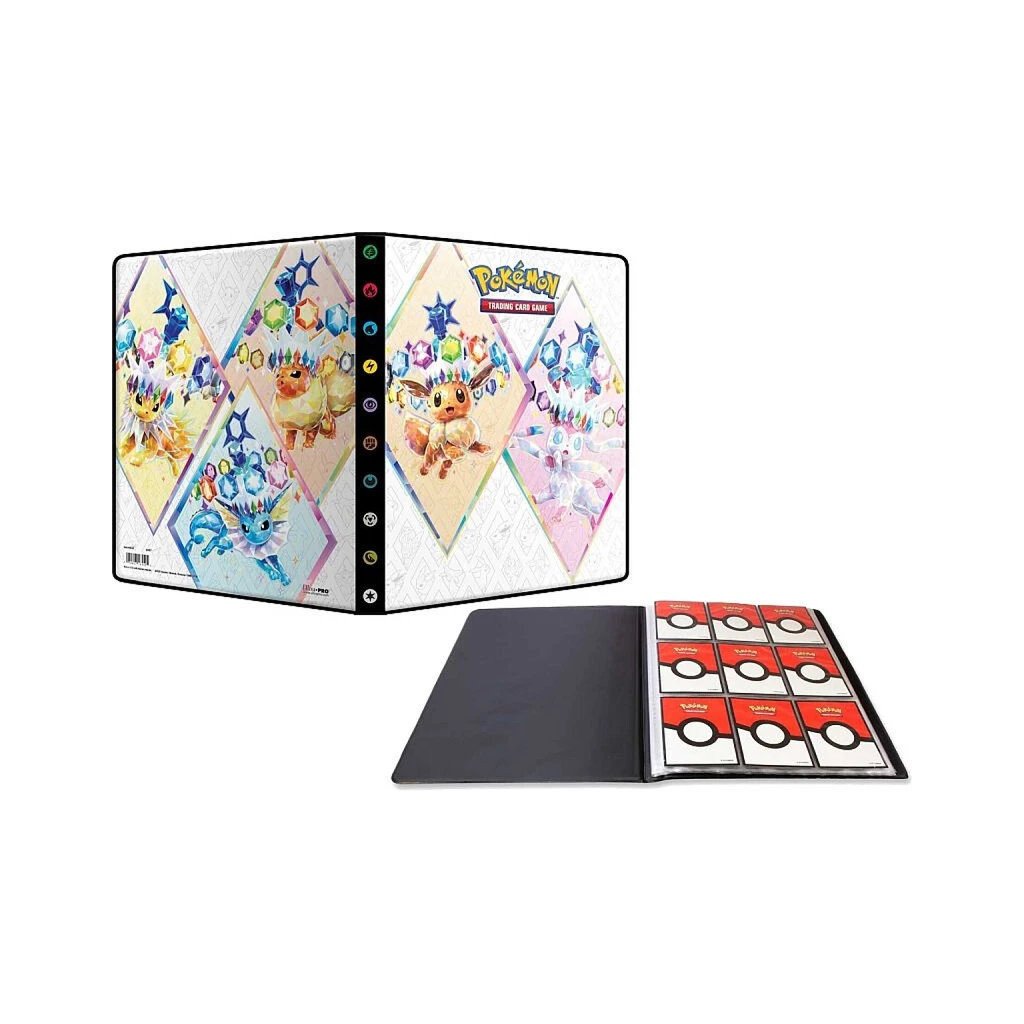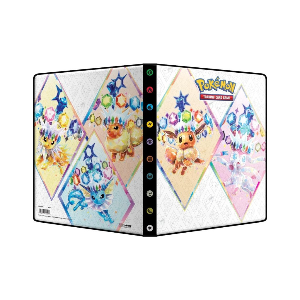 Cahier range-cartes Pokémon EV08.5 : Evolutions Prismatiques. Format A4, peut contenir 180 cartes (10 pages, 9 pochettes). Marque Ultra Pro.
