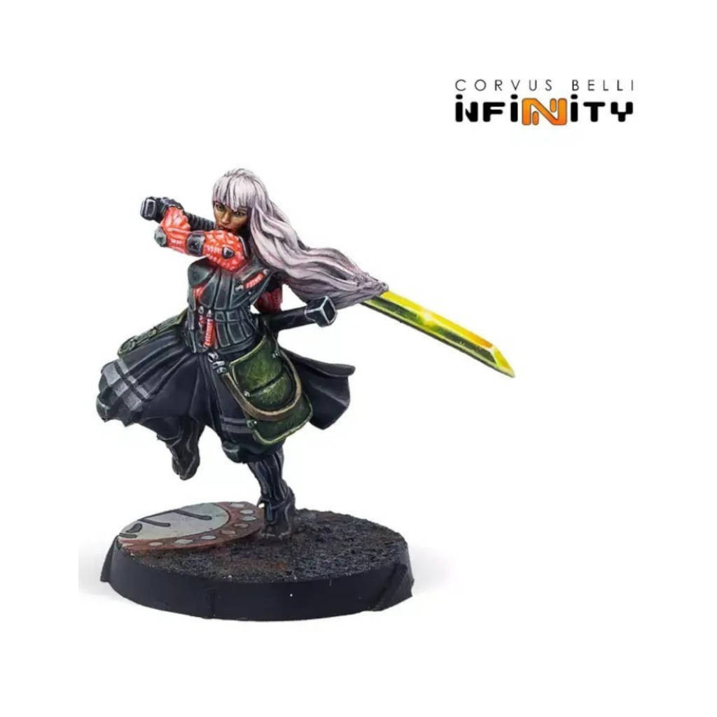 La boîte Shinobu Kitsune (Monofilament CCW) contient 1 figurine d'experte ninja mystérieuse pour renforcer la faction JSA à Infinity.