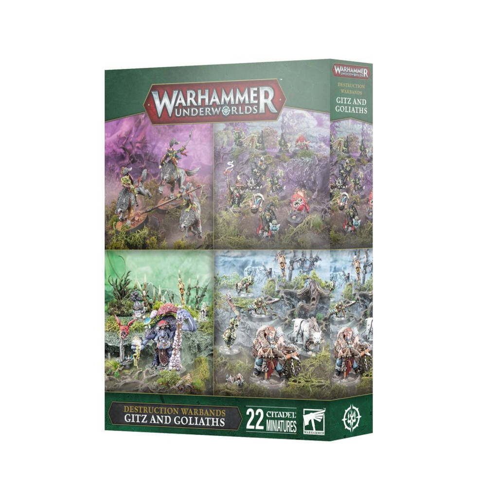 Dans la boîte Gitz and Goliaths, pour Warhammer Underworlds, prenez la tête de 4 bandes de la destruction pour une grande variété de styles de jeu.