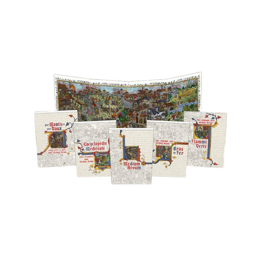 Medium Aevum vous invite à vivre des aventures dans l’Europe du Moyen-Âge. Un occident médiéval, historique, non fantastique mais teinté de superstitions et de croyances. Coffret Collector.