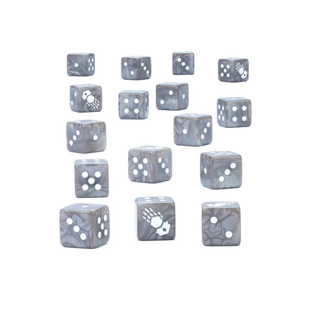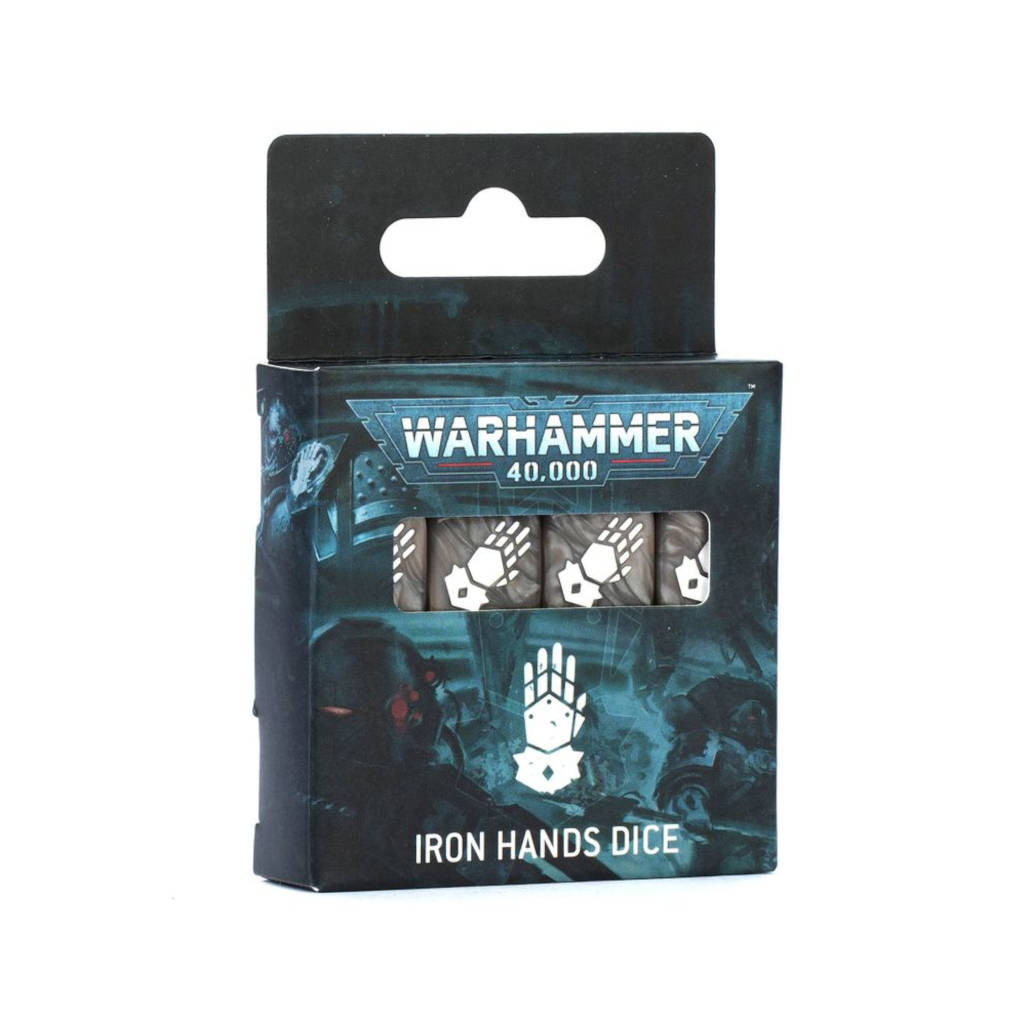 Les Iron Hands peuvent paraître froids et distants, mais leur fureur se révèle quand ils combattent avec une féroce efficacité et lorsqu'ils emploient les bénédictions de l'Omnimessie comme aucun autre Chapitre ne le fait. Nul ne peut résister à leur progression alors qu'ils éradiquent toute opposition.Ce set de 16 dés à six faces aux arêtes carrées, sur le thème des Iron Hands, s'utilise lors des parties de Warhammer 40,000. Ils sont en plastique acrylique gris à volutes avec des marquages blancs et mesurent 16mm de côté. Les faces 1 à 5 ont des marquages traditionnels, et la face du 6 est décorée d'une icône de gantelet stylisé des Iron Hands.