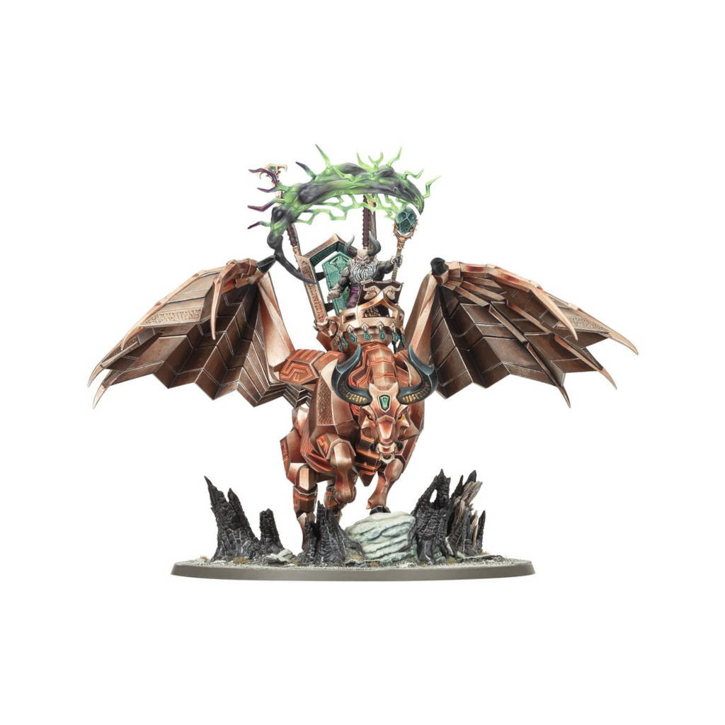 L’on dit qu’Urak Taar est incommensurablement ancien, qu’il a étudié avec Hashut lui-même la manière de soumettre le Chaos, qu’il a conçu plus de machines démons qu’il est capable de s’en souvenir, et que c’est sous son impulsion que la glorieuse Forge Anathème s’est tournée vers l’adoration du Père-taureau. Il aurait dû céder à la malédiction de sarcolithe il y a bien longtemps, mais sa seule volonté et d’occultes secrets en ont repoussé l’échéance. Il cherche désormais rien moins que suivre la voie de son maître et atteindre l’apothéose. Juché sur le Taurus Ghorrakos au corps de bronze, il manie les flammes de la ruine sans peur, tout en soumettant ses ennemis à une once de sa propre terrible malédiction.Ce kit en plastique permet d'assembler Urak Taar, monté sur son Taurus Infernal, Ghorrakos. En tant que premier et plus grand des Forgedémons, il constitue le meneur ultime pour vos armées de Forgeruines de Hashut dans les parties de Warhammer Age of Sigmar. Urak Taar sème une terreur absolue sur le champ de bataille, en frappant avec ses sorts tandis même que sa monture encorne ses ennemis et les écrase au sol sous ses sabots de métal. D'une hauteur de 144mm, avec des ailes d'une envergure de 193mm, cette figurine imprégnée d'une sombre majesté dominera toute votre armée par sa taille, ainsi que le champ de bataille. Ses détails saisissants, incluant de la chair frappée par la sarcolithe, des runes et des gemmes, mettront au défi vos talents de peintre. Taar peut être assemblé avec ou sans torrents de ruine autour de son bâton.Cette figurine peut autrement être assemblée comme un Forgedémon sur Taurus Infernal, un sorcier monté rusé et retors.Ce kit est composé de 76 éléments en plastique et de 1x Socle Rond Citadel de 130mm.