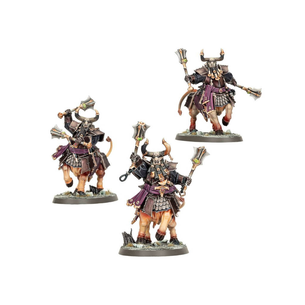 Ce kit plastique pour Warhammer : Age of Sigmar permet d'assembler 3 Centaures Taureaux, de puissants briseurs de ligne pour les armées Helsmiths of Hashut.