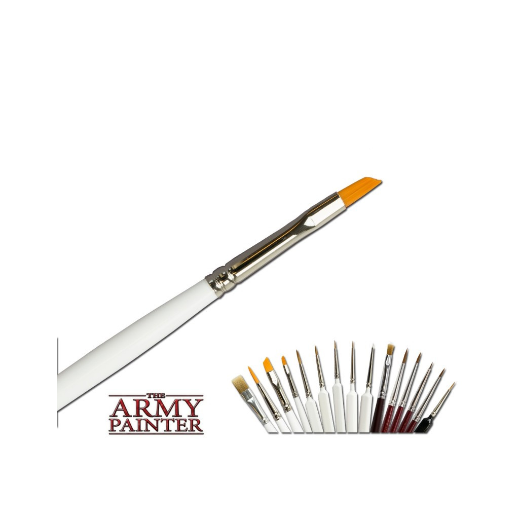Ce pinceau est très populaire, et comme son grand frère, ce spectaculaire pinceau sec possède une coupe à 43 degrés, ce qui le rend parfait pour le brossage à sec des petites miniatures.La taille de ce pinceau est conçue pour le brossage à sec des zones d'un modèle, comme le maille ou une arme, et non nécessairement pour le modèle entier à la fois.