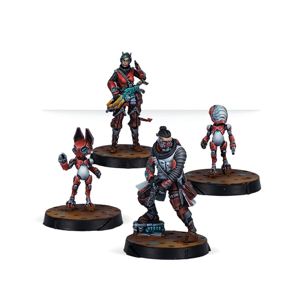 La boîte Nomads Support Pack contient 4 figurines pour renforcer la faction Nomads à Infinity.