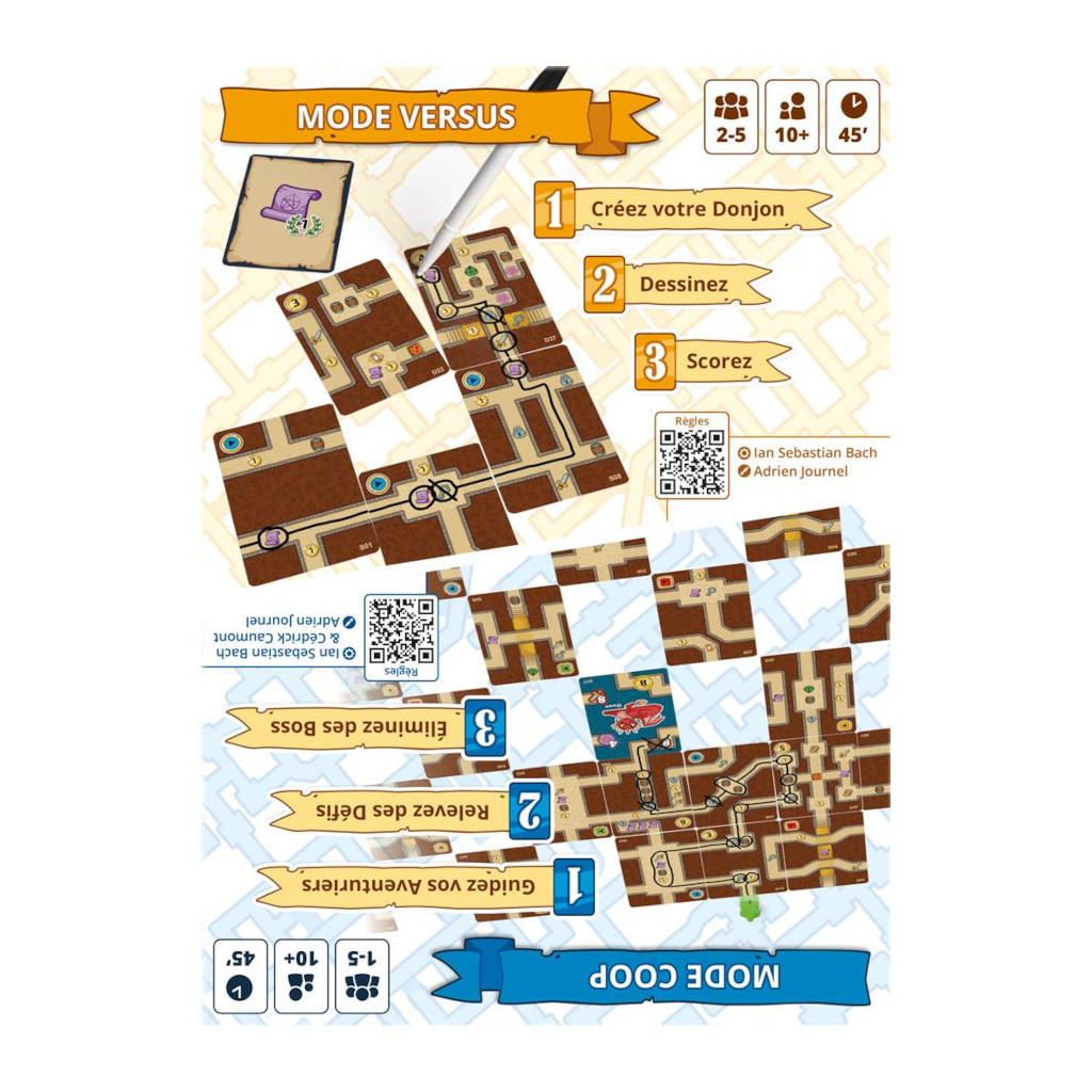 Entrez dans un donjon dont vous êtes l'architecte ! Créez votre labyrinthe à l’aide de cartes puis tracez un chemin au feutre pour collecter un maximum d’objets... et éviter de tomber dans une impasse. Façonnez votre parcours en mêlant connexion de cartes, optimisation de trajet et objectifs variables à chaque partie. Chaque tour introduit des objectifs différents à atteindre, un marché d’améliorations pour optimiser votre deck (livres de sorts, objets, cartes spéciales) et une tension croissante.