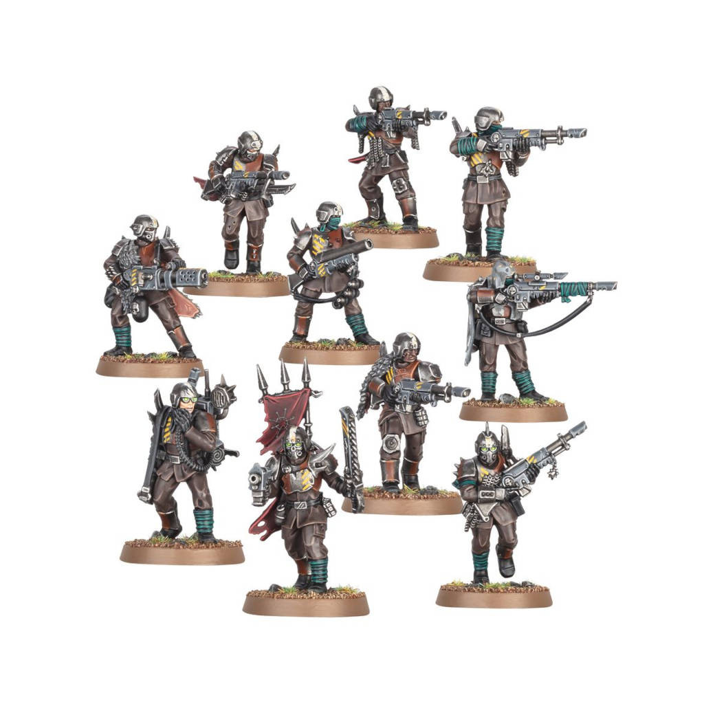 Ce kit en plastique pour Warhammer 40K permet de monter 10 Traitor Guardsmen Squad, une unité de soutien d'adorateurs mortels pour les armées Space Marines du Chaos.