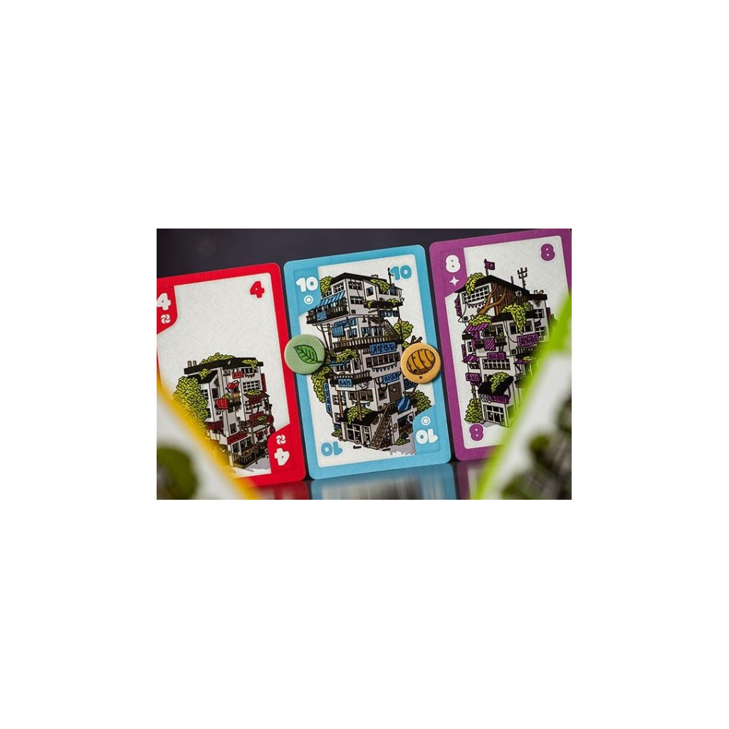 Gagner le pli pour construire la ville, ou perdre la main pour augmenter vos chances de victoires? À vous de voir, car le choix du moment est crucial! Vous n’aurez que 10 plis pour prouver que vous êtes le ou la plus grande architecte environnementale dans ce jeu unique de conception japonaise. Prévoyez, équilibrez, négociez, bluffez : tout est permis.