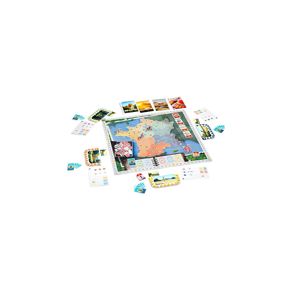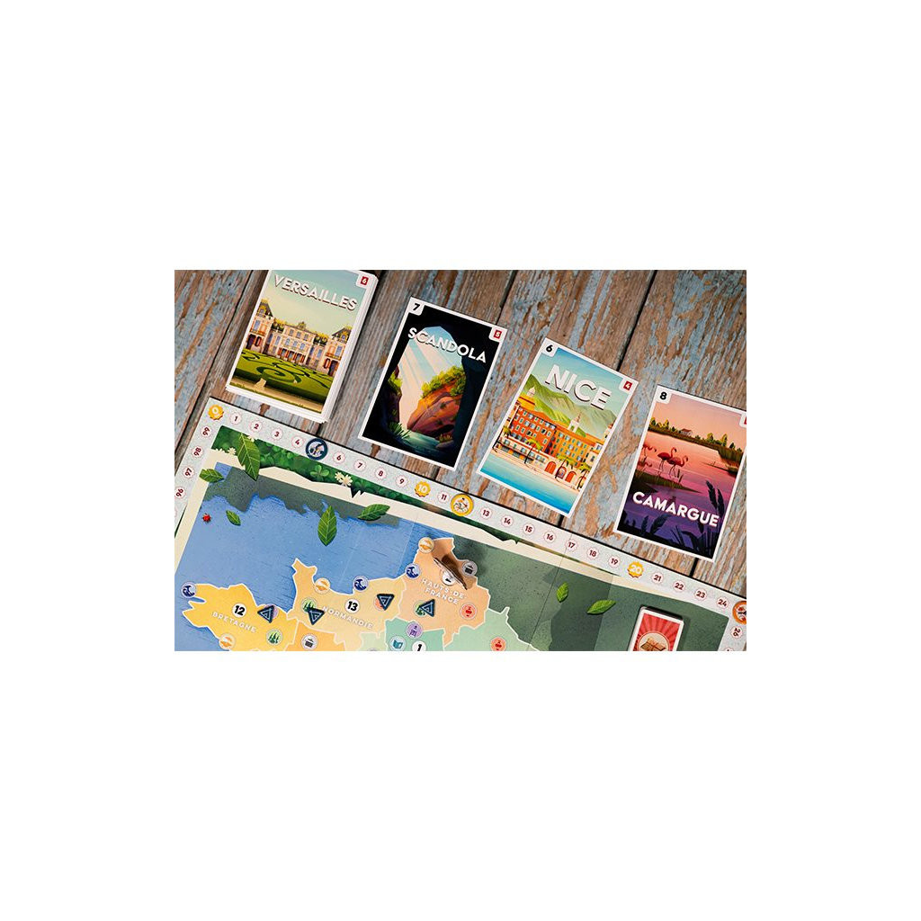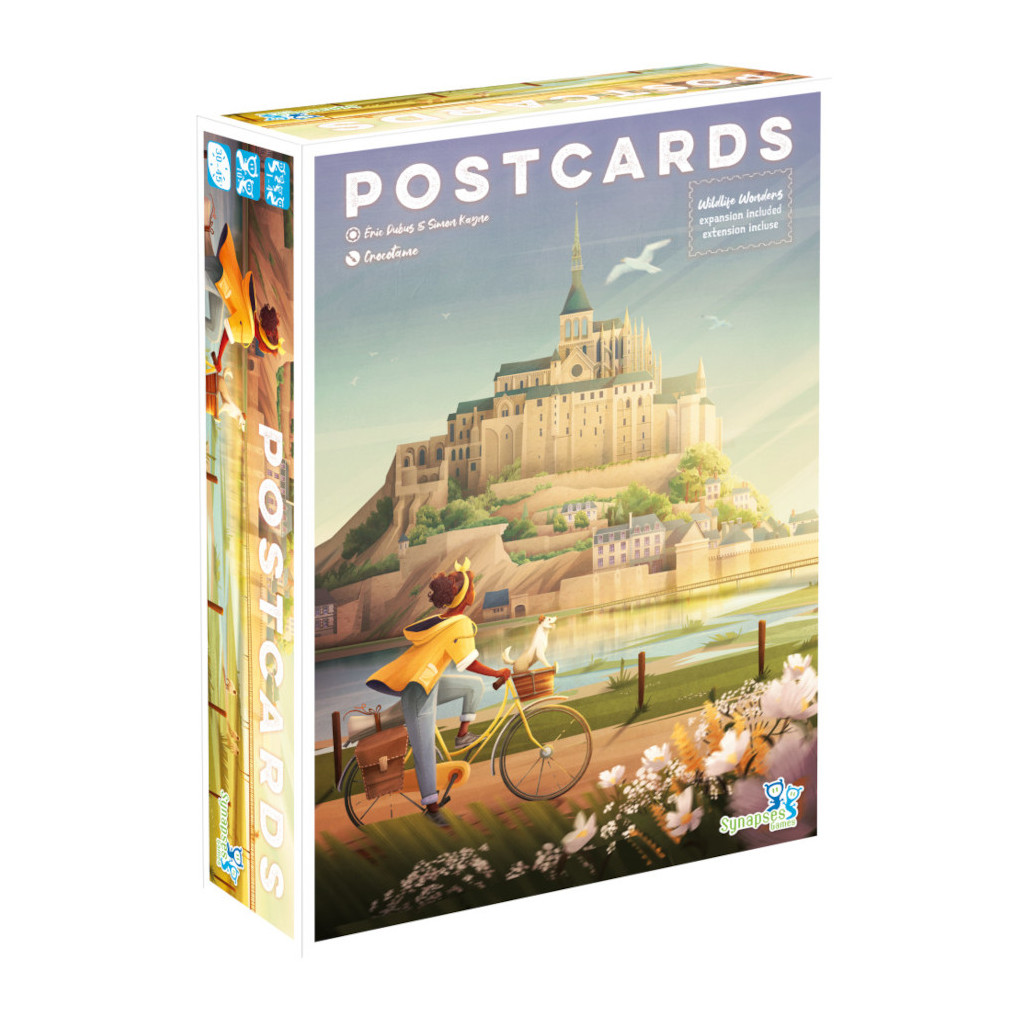 - Illustrations époustouflantes : Le jeu présente des cartes postales magnifiquement illustrées et un plateau vibrant qui capture l’essence des paysages et de la culture française.- Gameplay captivant et stratégique : Avec des règles intuitives et des actions simples, Postcards est facile à apprendre, mais sa maîtrise nécessite une planification minutieuse. Chaque décision influence l’issue du jeu, offrant ainsi une expérience à la fois accessible et profondément gratifiante pour les joueurs stratégiques.- Rejouabilité élevée : Avec des cartes d’itinéraire différentes, des cartes postales aléatoires et plusieurs façons de marquer des points, aucune partie ne se ressemble. Que vous vous concentriez sur un déplacement efficace, que vous soyez en course pour envoyer des cartes postales ou que vous maximisiez les récompenses des campements, il y a différentes façons de gagner.- Extension incluse !