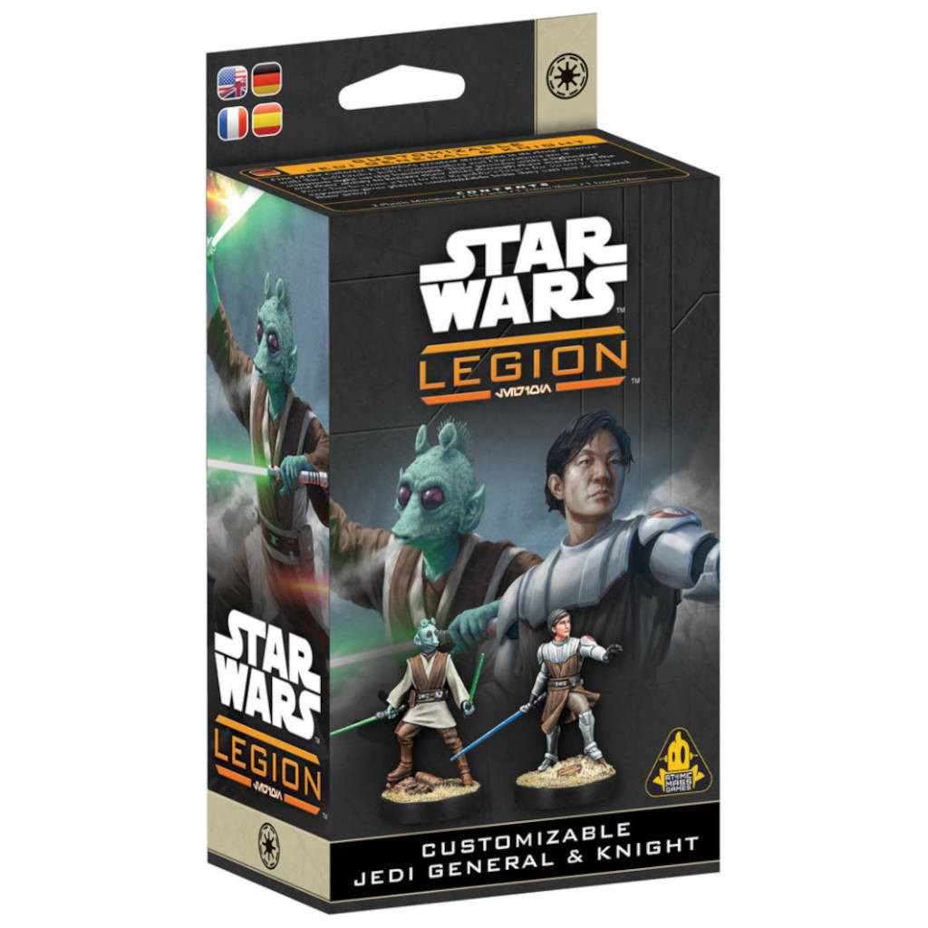 Star Wars : Légion - Customizable Jedi General & KnightParmi ses nombreux atouts, la République Galactique peut compter sur son alliance avec l’Ordre Jedi, dont les agents et commandants n’hésitent pas à se rendre sur le champ de bataille. En plus de leurs incroyables prouesses au sabre laser, les chevaliers Jedi savent galvaniser les troupes grâce à leur maîtrise de la Force. Pour mener la République Galactique à la victoire, ajoutez à votre armée les Jedi de cette extension que vous pourrez personnaliser grâce à de nombreuses options de montage.Contenu :- 2 figurines en plastique, - 15 cartes (2 Unité, 11 Amélioration, 2 Commandement), - 1 plaquette de pions, - 1 feuillet.