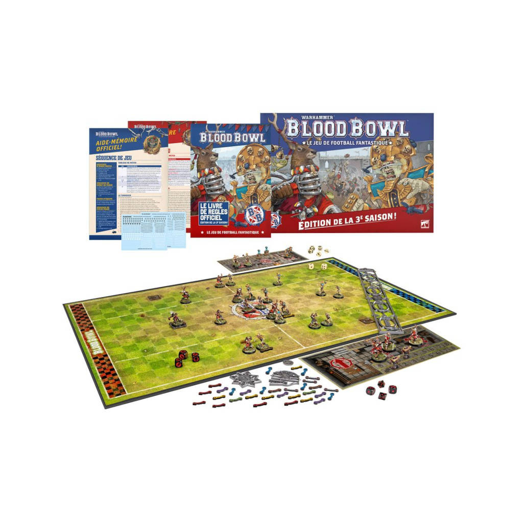 Blood Bowl est un jeu de football américain fantastique qui prend place dans une certaine idée du Vieux Monde, où la violence sportive est non seulement tolérée, mais encouragée, car elle constitue un bon moyen de régler "pacifiquement" les conflits. Cette boîte de base vous met dans la peau d'un coach d'une équipe de Rois des Tombes ou de Bretonniens qui vont s'affronter dans de grands stades fantastiques pour la gloire, le profit et le plus grand plaisir des hordes de fans!Blood Bowl est un jeu qui fait la part belle à la tactique, aux probabilités, aux actions risquées et à la violence frénétique. C'est à vous de choisir comment diriger votre équipe: favoriserez-vous la vitesse et l'agilité, ou préfèrerez-vous faire le ménage avec de bons gros cogneurs? Le jeu est parfaitement jouable en Ligue au long cours ou pour de simples Matchs Amicaux ponctuels, et il conviendra à tous les types de coachs.Cette boîte de base contient tout ce dont vous avez besoin pour jouer à Blood Bowl: deux équipes, un livre de règles, un terrain de jeu double face, des pions, des dés et d'autres accessoires de jeu. Les Brionne Barons sont une équipe de Bretonniens, avec des chevaliers en armure en quête de gloire sur les terrains de Blood Bowl. Les Nehekhara Nightmares sont une équipe de Rois des Tombes, des guerriers revenus d'entre les morts pour montrer aux vivants comment on joue vraiment à ce sport. Que vous soyez un nouveau joueur ou un vétéran de retour après une longue trêve sportive, cette boîte est idéale pour vous lancer.Contient :– 12 joueurs Bretonniens en plastique rouge: 6x Trois-quarts Écuyers, 2x Receveurs Chevaliers, 2x Lanceurs Chevaliers et 2x Blitzers Chevaliers du Graal, ainsi que des pions, des marqueurs de Relance, et des ballons supplémentaires– 14 joueurs Rois des Tombes en plastique de couleur os: 2x Blitzers, 2x Lanceurs, 4x Gardiens des Tombes et 6x Trois-quarts Squelettes, ainsi que des pions, des marqueurs de Relance, et des ballons supplémentaires– 1x exemplaire de Blood Bowl: Le Livre de Règles Officiel – Édition de la 3e Saison, un livre relié de 200 pages qui explique les règles du jeu, comment organiser une Ligue et développer votre équipe, et qui contient les Fiches d'Équipe et les profils de joueurs– 1x terrain double face pliable: une face représente un terrain herbeux, et l'autre un terrain en astrogranite– 2x Fosses d'équipe double face– 37x Pions de jeu en plastique pour suivre les statuts en cours de partie– 1x Règlette de passe en plastique– 1x Gabarit de déviation en plastique– 1x Gabarit de renvoi en plastique– 7x dés sur le thème des Rois des Tombes– 7x dés sur le thème des Bretonniens– 1x Feuille de référence des Bretonniens– 1x Feuille de référence des Rois des Tombes– 1x Planche de Décalcos des Bretonniens pour Blood Bowl, proposant 320 décalcos de grande qualité– 1x Planche de Décalcos des Rois des Tombes pour Blood Bowl, proposant 298 décalcos de grande qualitéCe kit est composé de 226 éléments en plastique et de 26x Socles Ronds Citadel de 32mm.