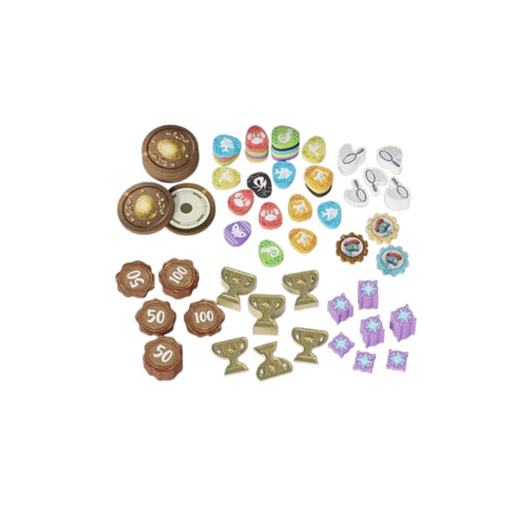 Un kit qui remplace les oeufs, les jetons énergie, les filets à papillon, les jetons de score 50/100, les jetons solo, les jetons de pose d’oeufs par des jetons en bois et les trophées par des éléments en métal ! Matériel :- Oeufs en bois- Jetons de pose d’oeufs en bois- Jetons 50/100 en bois- Jetons énergie en bois- Jetons Filet en bois- Trophées en métal en véritable faux or
