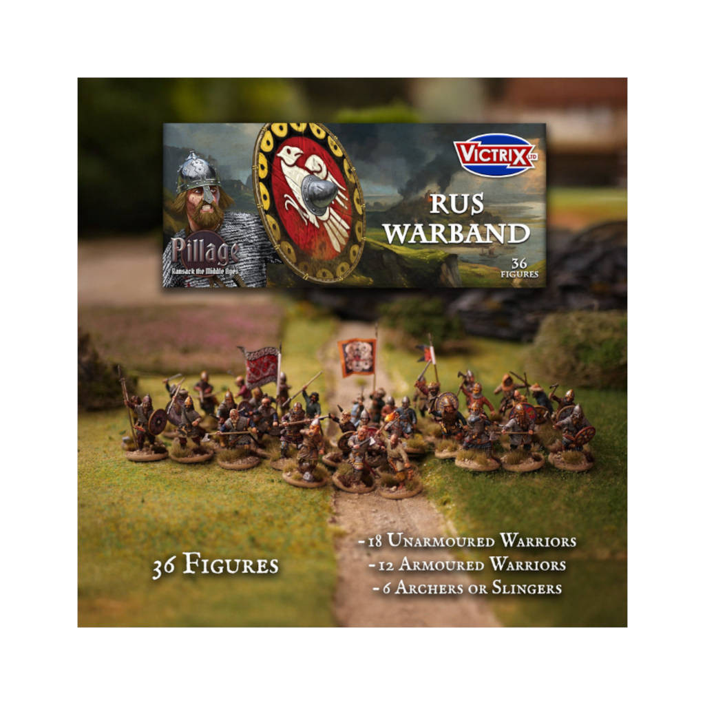 Ce kit plastique de la marque Victrix Miniatures vous permettra d'assembler une Warband comprenant 36 figurines de Rus. Un starter idéal pour le jeu Pillage !