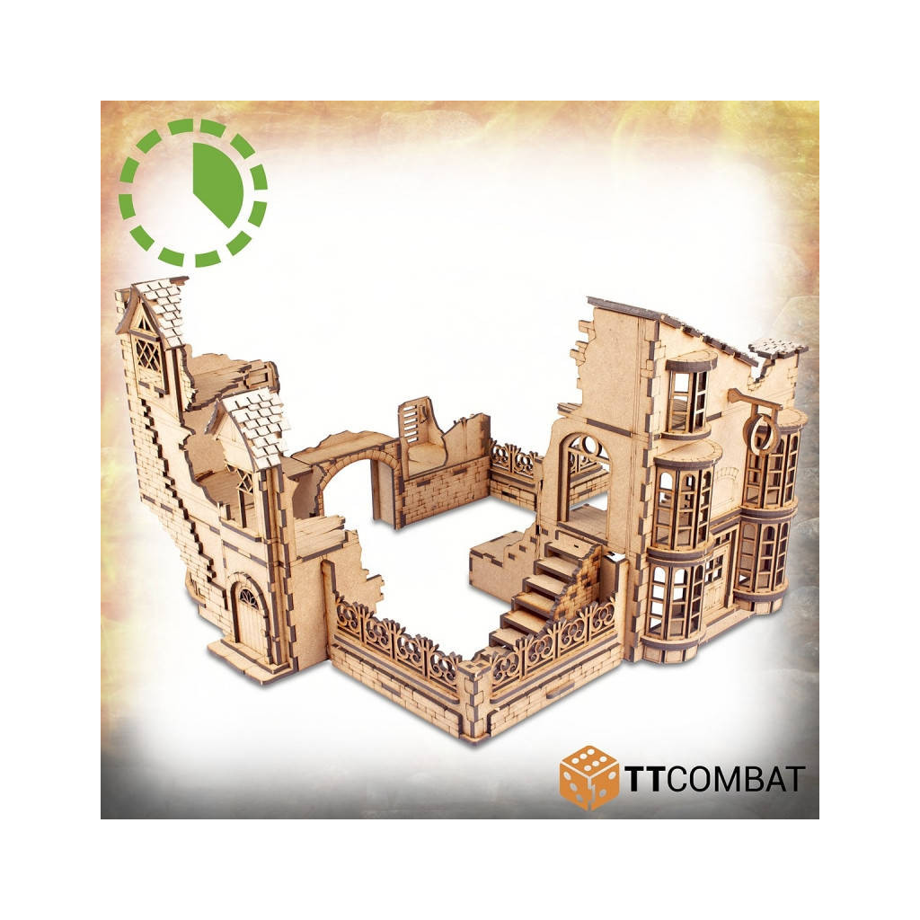Savage Domain: Square Route est un kit en MDF plein de bâtiments, murs, portes et accessoires en ruine. Construisez une longue rangée de bâtiments détruits ou une route sinueuse de désespoir, pleine d'obstacles et de passerelles...